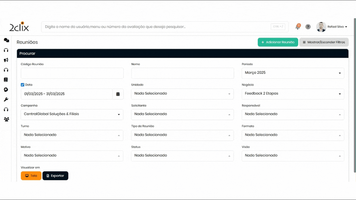 - Realize o filtro desejado e clique sobre a reunião correspondente.
