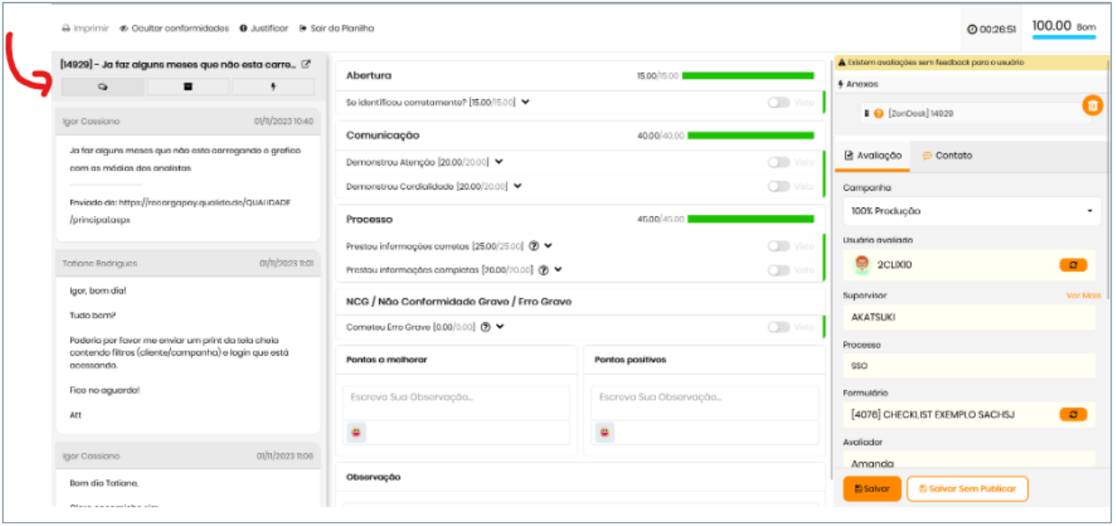 Se você precisar iniciar uma avaliação a partir de um ticket específico, siga o passo a passo abaixo. Vamos detalhar cada etapa para garantir que você consiga realizar a operação com facilidade.