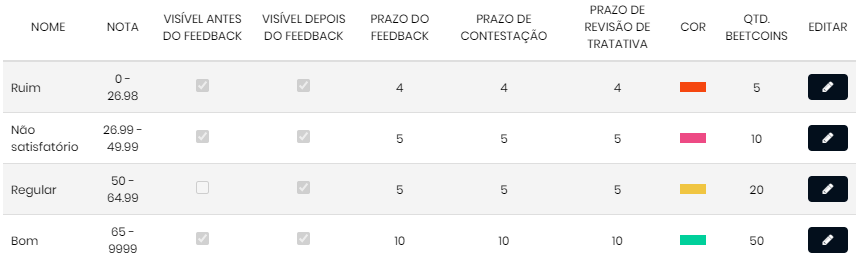 Bonifique sua equipe com Beetcoins de acordo com o conceito de nota