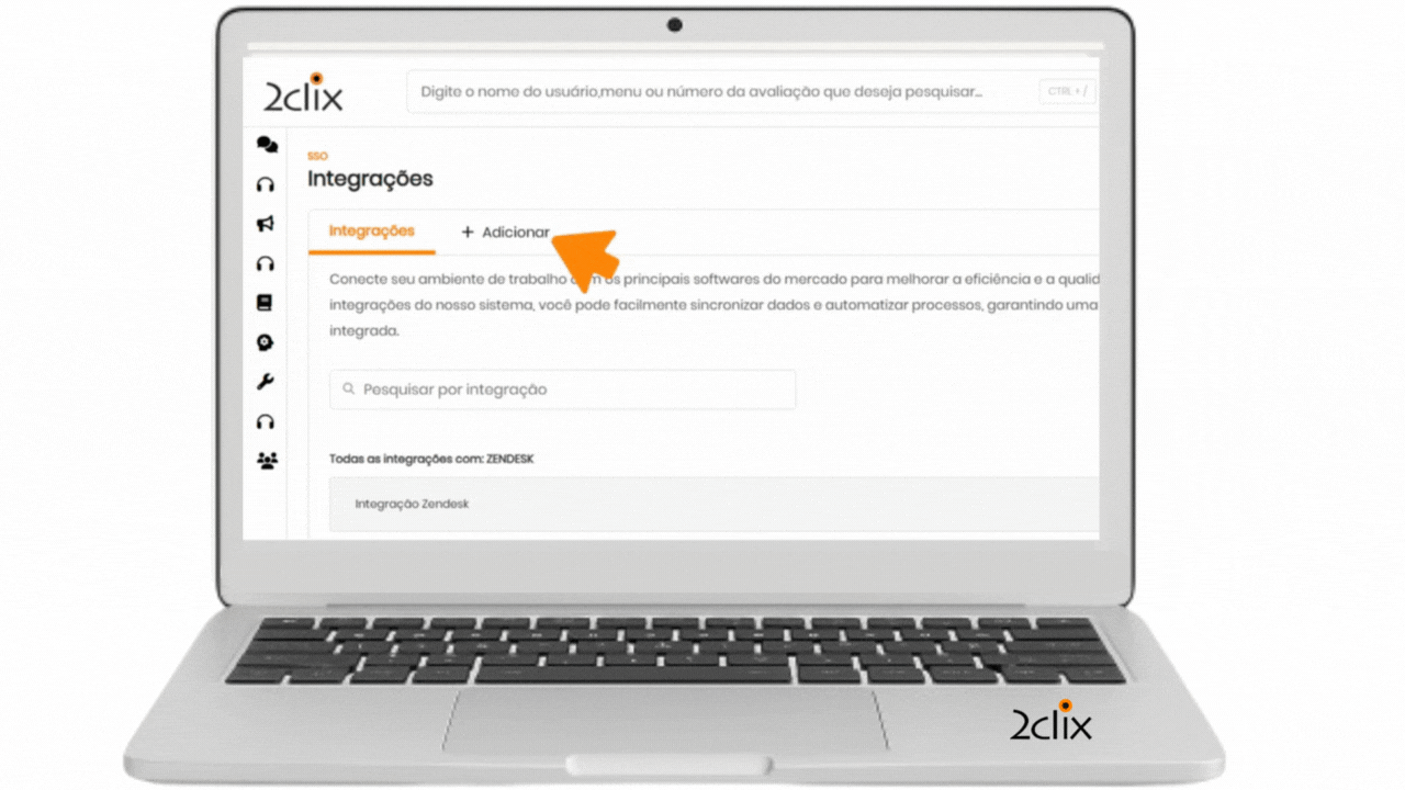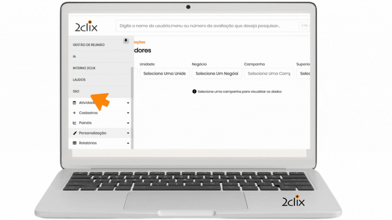 No menu lateral da 2CLIX, clique na opção: SSO> Personalização> Integrações.