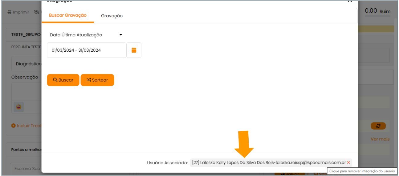 Na tela de integração, localize o usuário desejado e clique em Remover.