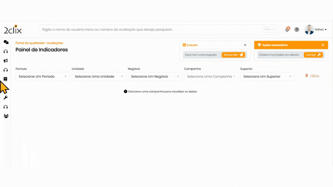 📌 Também é possível configurar o usuário na tela da avaliação.
