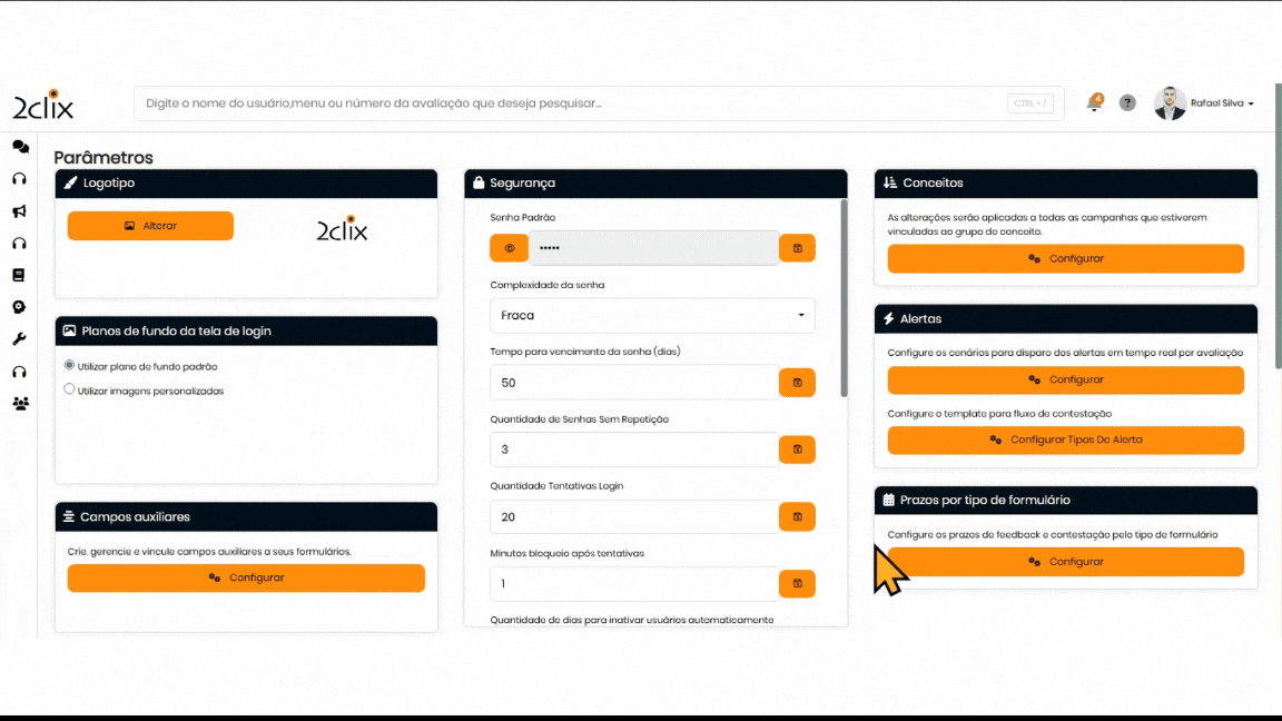 Finalizada a configuração, você pode verificar no cadastro de usuários se os logins estão integrados na plataforma 2clix.