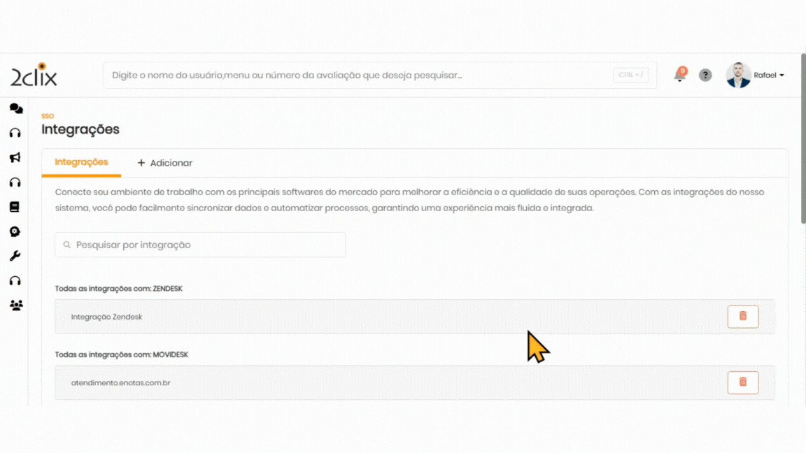 A integração de tickets permite a busca e avaliação rápidas dos atendimentos realizados na plataforma Movidesk.
