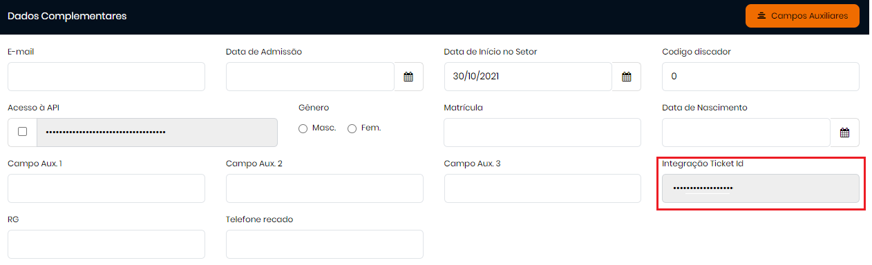 Valide os campos em "Dados Complementares" para verificar se as informações de integração estão preenchidas.