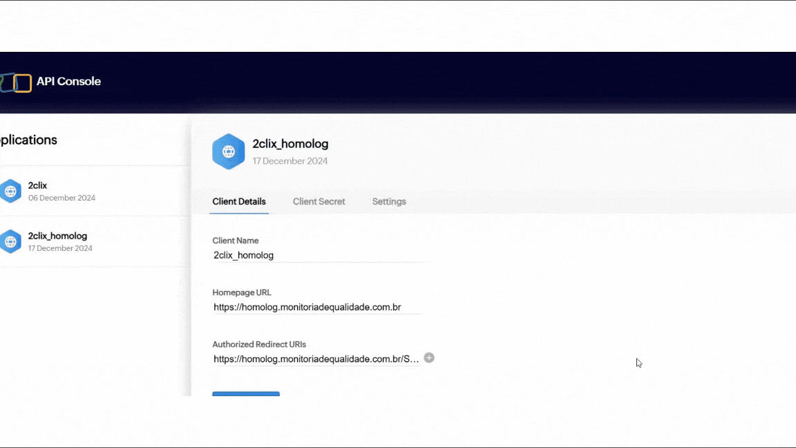 - Identificação exclusivo: é o client ID do zoho