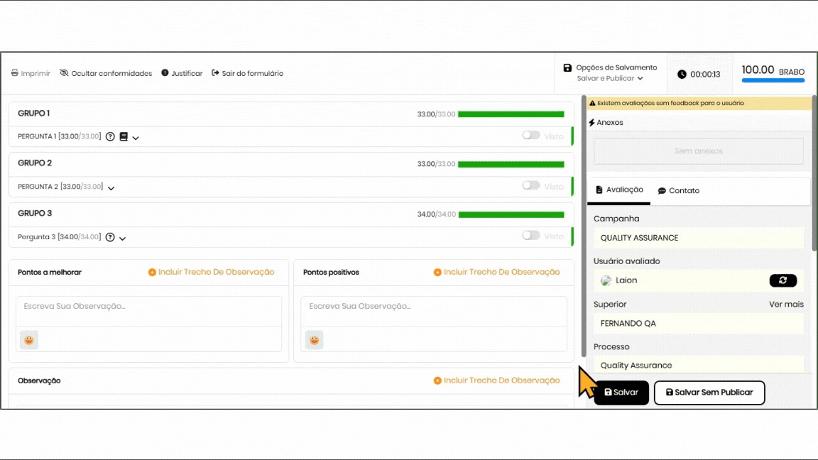 Com a integração ativa, as interações registradas no Zoho serão incorporadas automaticamente ao formulário de avaliação.
