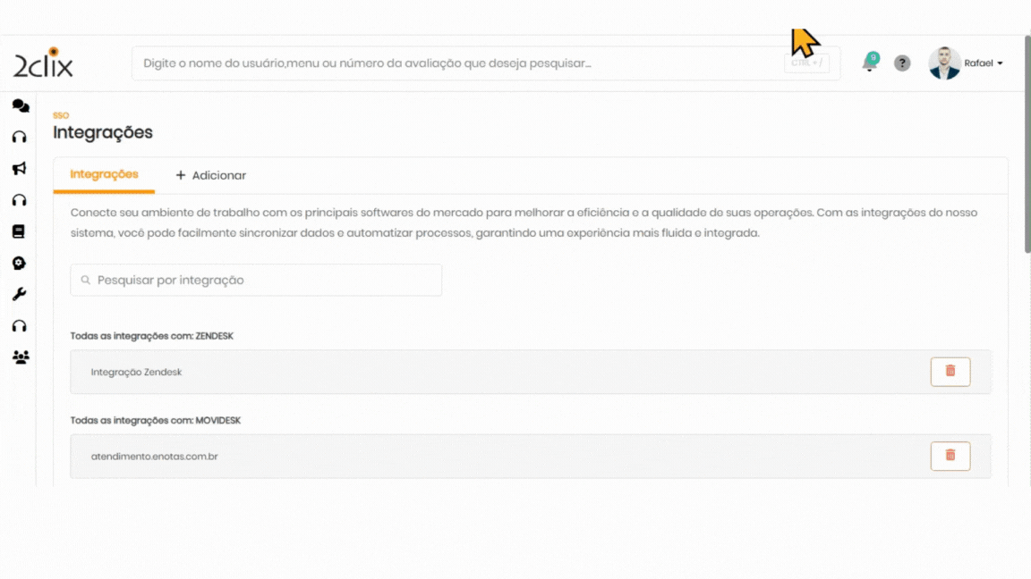 Acesse o painel do 2clix em: SSO>Personalização> Integrações.