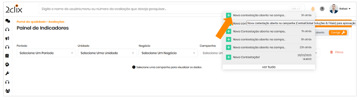 🔔 Notificações- Além de acessar o relatório pelo menu lateral ou realizar a busca no campo de pesquisa, os aprovadores cadastrados receberão notificações no sino de notificações sempre que houver uma nova contestação aberta para aprovação.