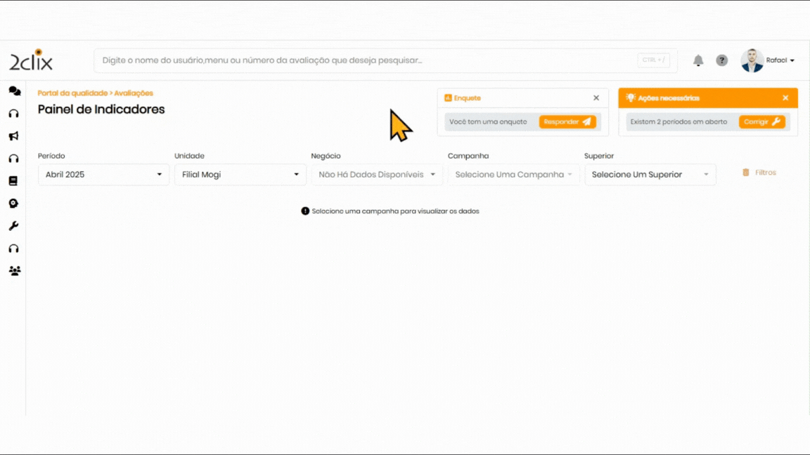 ⚠️ Tempo de Atualização: Esse relatório é atualizado em tempo real, garantindo que você sempre tenha acesso aos dados mais recentes. Para aparecer a avaliação nesta tela, é necessário que exista uma contestação registrada e que o usuário esteja cadastrado como aprovado. Esse cadastro deve ser realizado na tela de Campanhas.