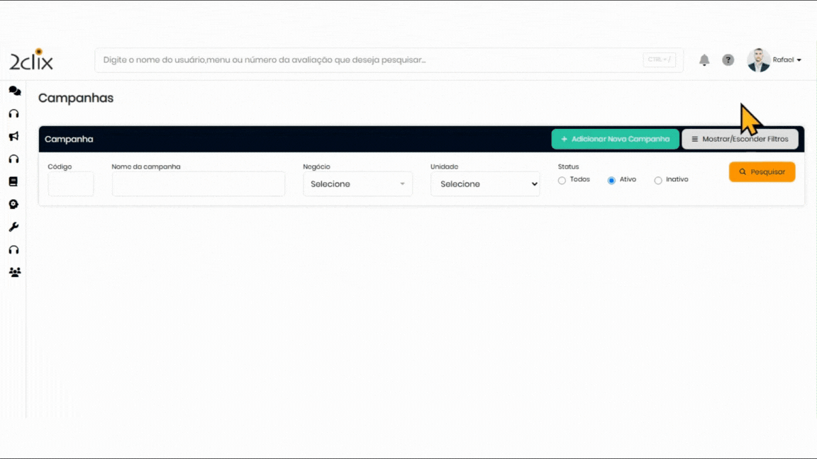 No menu lateral esquerdo, acesse: SSO > Cadastrados > Campanhas.