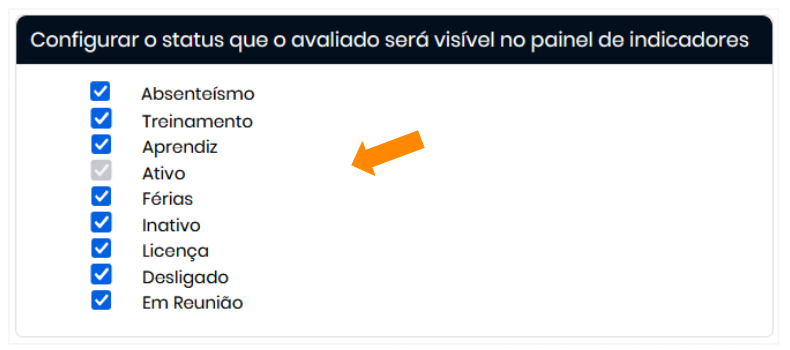 Status do Avaliado : Configure o status no qual os usuários avaliados serão visíveis na plataforma.