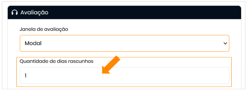 Quantidade de Dias Rascunhos : Defina por quantos dias as avaliações permanecerão como rascunho. (🔎 Saiba mais em: Avaliação em Rascunho / Continuar Depois).