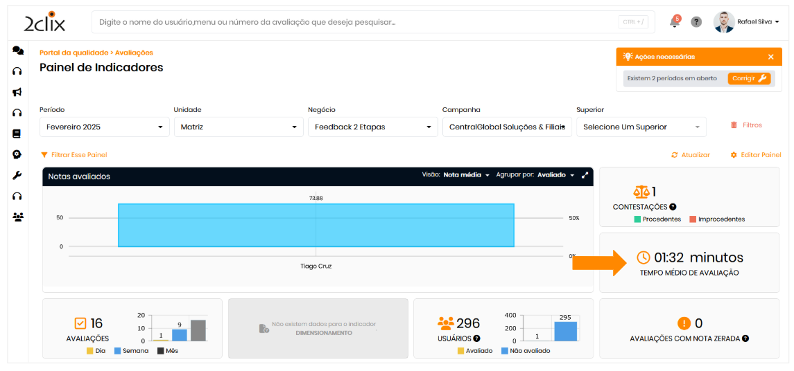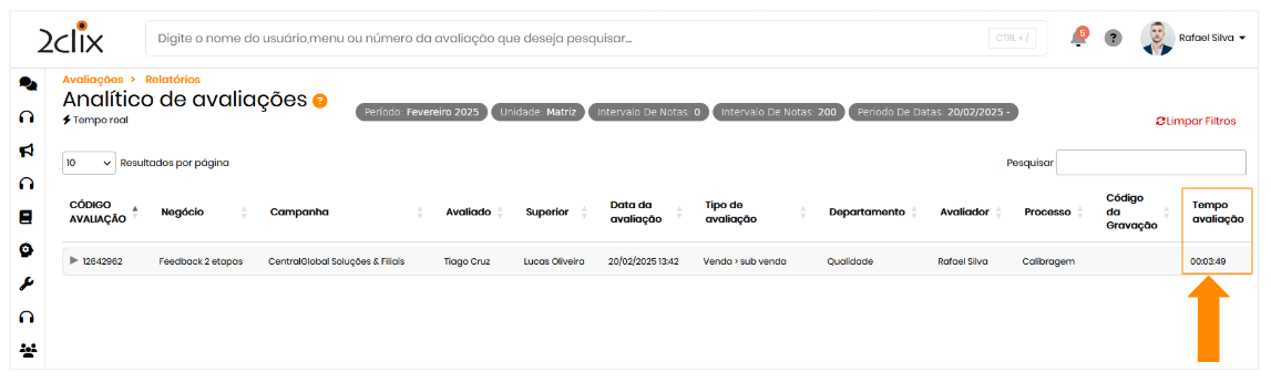 Os supervisores e gestores podem acessar o Relatório Analítico de Avaliações para visualizar o tempo médio gasto por cada avaliador, permitindo uma gestão mais eficaz do desempenho da equipe.