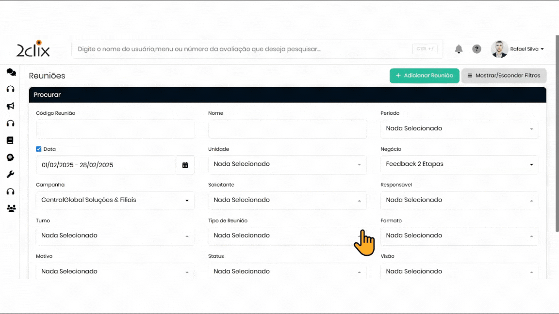 Localize a Reunião: Utilize os filtros para encontrar a reunião desejada. Clique sobre a reunião para visualizar em tela ou exportar em Excel.