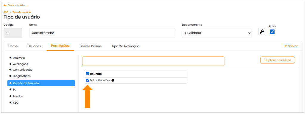 Para acessar e gerenciar tipos de reunião, é necessário ter a permissão: