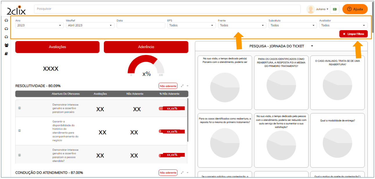 1- Acesse o Painel Aderência e utilize os filtros para refinar os dados que deseja visualizar.