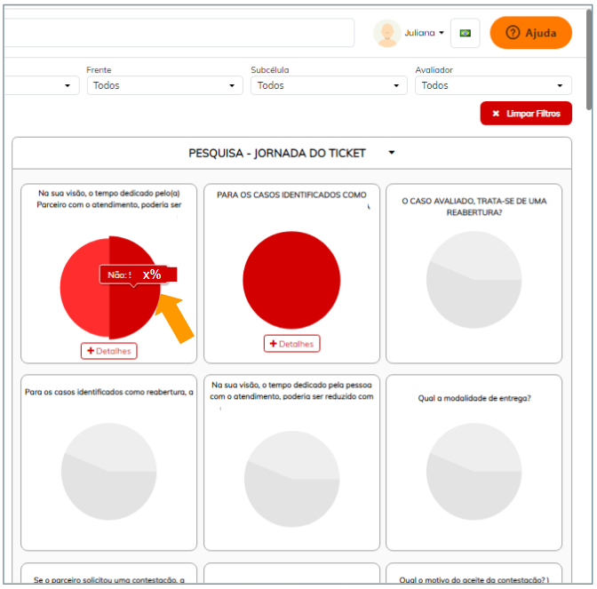 - Clicar nos diferentes segmentos dos gráficos permite aprofundar a análise e identificar pontos de melhoria.