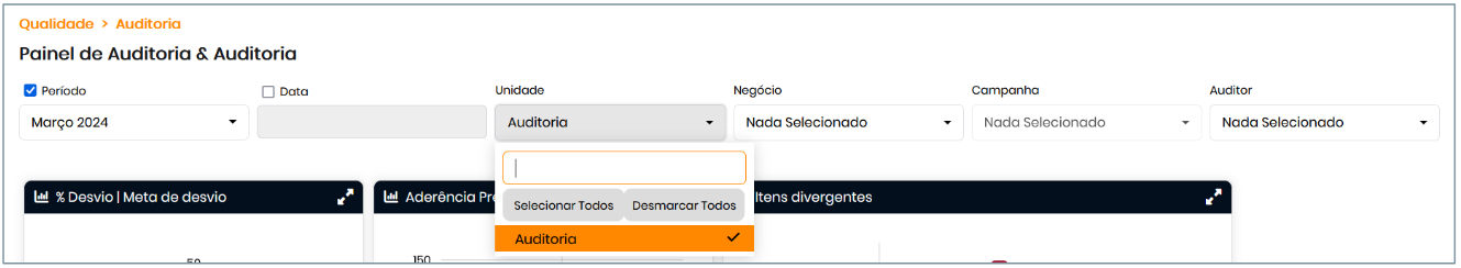 📌 As opções "Selecionar Todos" e "Desmarcar Todos" permitem marcar ou desmarcar rapidamente os filtros disponíveis, facilitando a análise de dados.