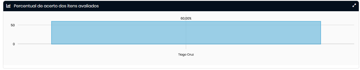 - Percentual de acertos: o calculo considera o total de conformidade dos itens avaliados (excluindo respostas do tipo ‘N/A’)e o percentual de respostas conformes.Ao clicar no gráfico, o usuário é direcionado para o relatório Avaliações por Usuário - Diagnóstico.