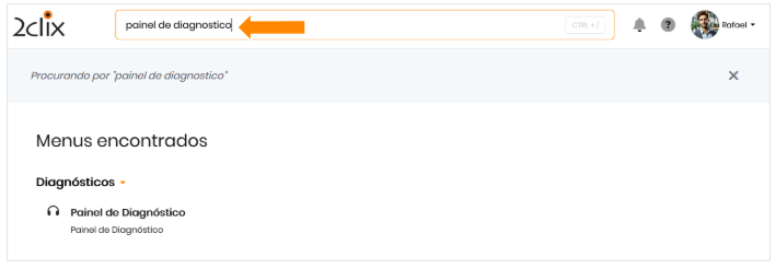 - Ou utilize o campo de busca: digite Painel de Diagnóstico.