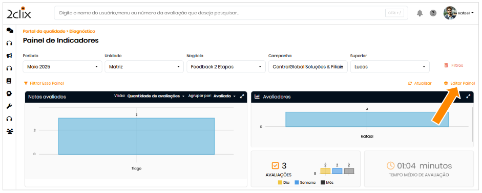 - Tempo médio de avaliação: tempo que o avaliador levou para concluir cada avaliação;
