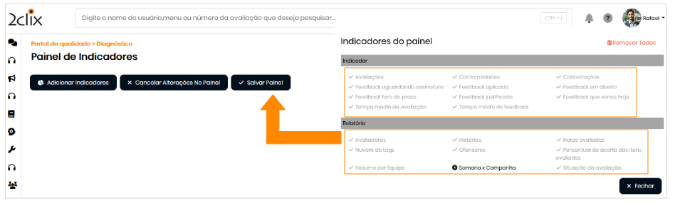 - Acione o botão Adicionar Indicadores marque os desejados e clique em Salvar Painel .