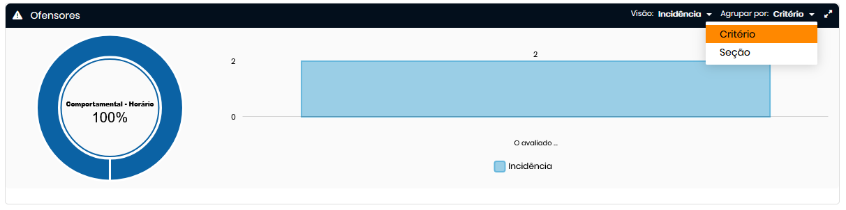 - Permite alternar entre as opções de agrupamento: Critério ou Seção;