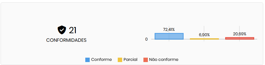 - Conformidades: total de respostas ‘conformes’. [Disponível em próxima atualização da plataforma.] O gráfico apresentará três categorias: