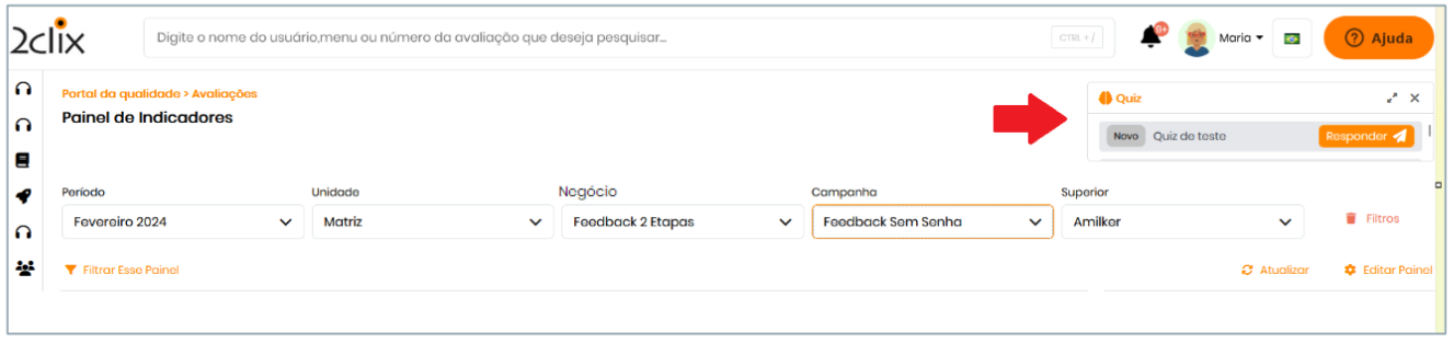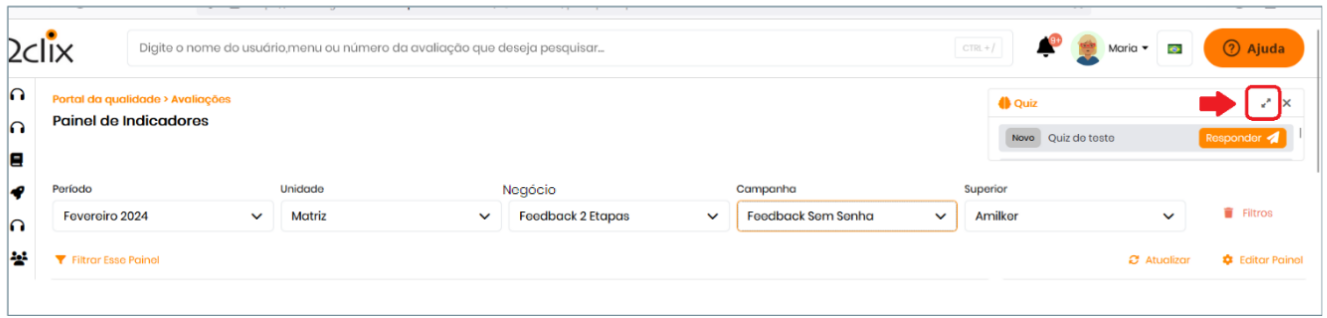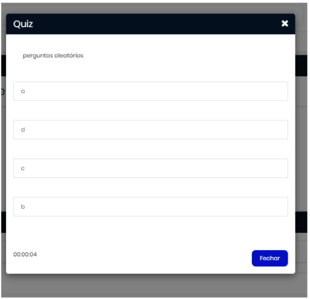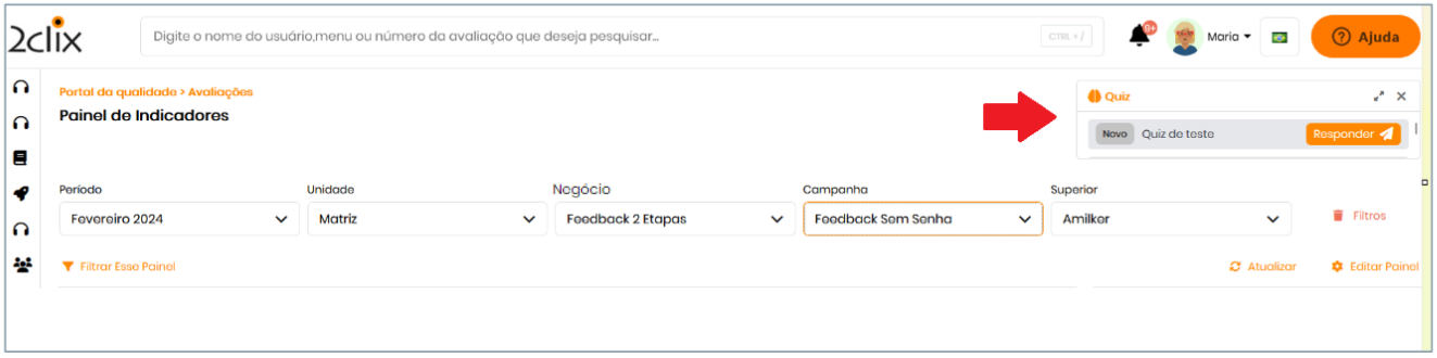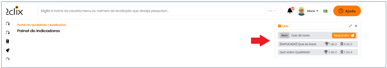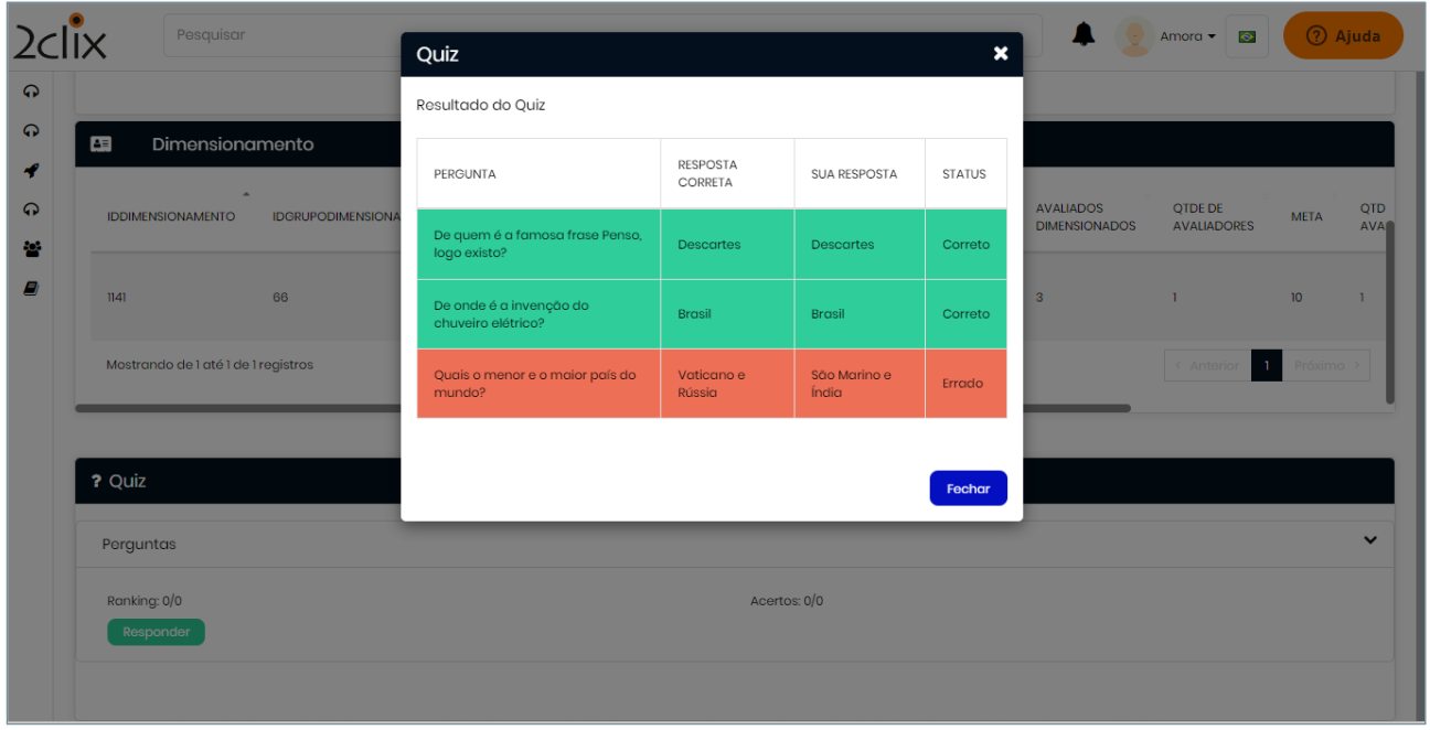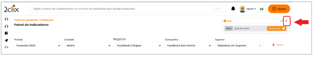 Caso o usuário não queira que essa informação fique em tela, basta realizar o clique no botão de fechar (x), e o quiz ficará oculto.