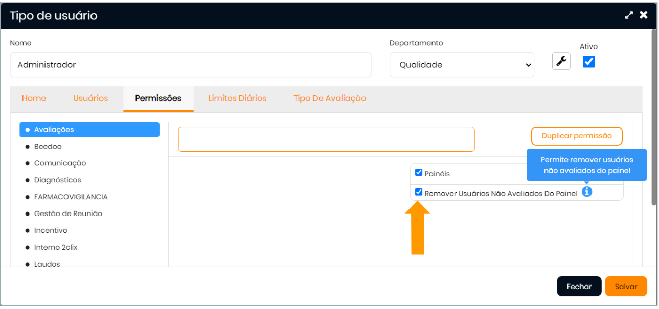 Com a Permissão: Remover Usuários Não Avaliados Do Painel