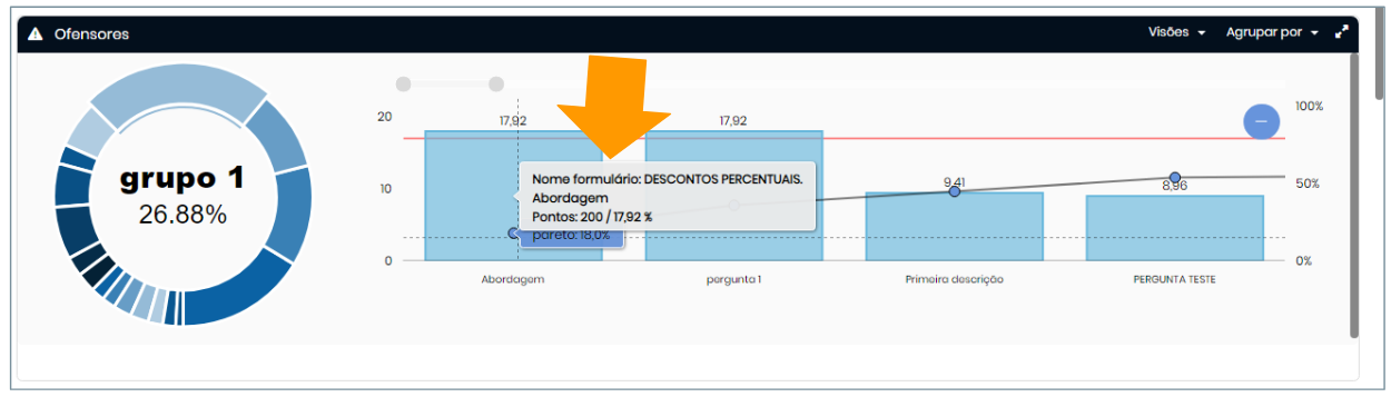 Gráfico de OfensoresO gráfico traz ofensores das avaliações, ou seja, sinalizações unificados em grupos.