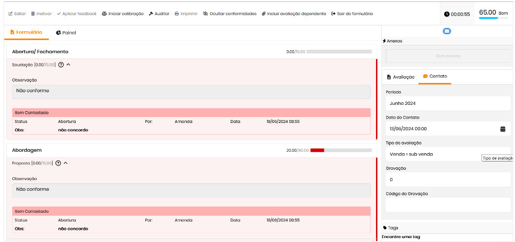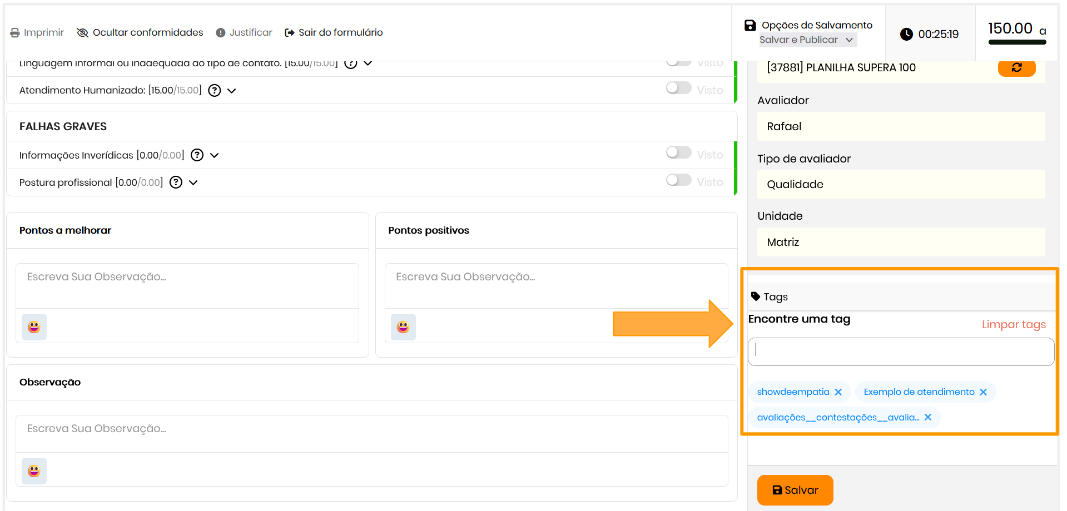 👁Na avaliação, no lado direito aparecerá a Tag que está relacionada.