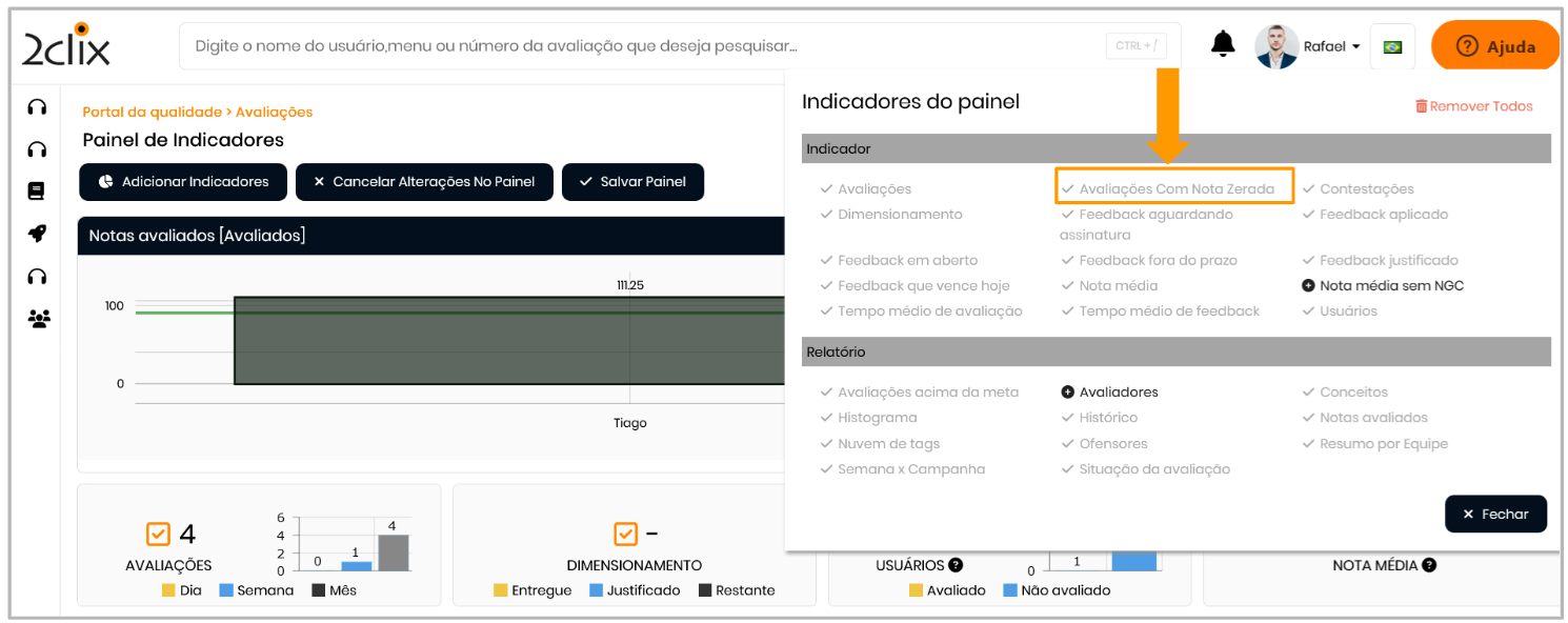 Ao buscar otimizar e simplificar o processo de acompanhamento e gestão de avaliações temos "Avaliação Zerada". Esse recurso permite um controle mais eficiente das avaliações que apresentam falhas graves, oferecendo uma visão detalhada das mesmas e possibilitando a tomada de medidas corretivas assertivas. Passos para Adicionar o indicador: