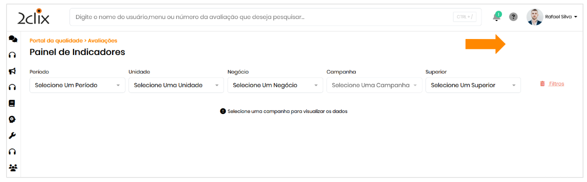 Gráfico Notas AvaliadasNo gráfico "Notas avaliadas", possui alguns filtros para análise, veja a imagem abaixo: