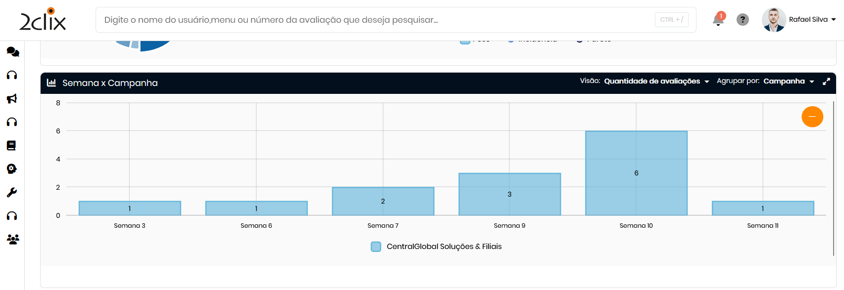 - Quantidade de Avaliações: Este filtro permite aos usuários visualizar a quantidade total de avaliações associadas a cada semana e campanha, fornecendo uma métrica valiosa para avaliar o volume de feedback recebido.