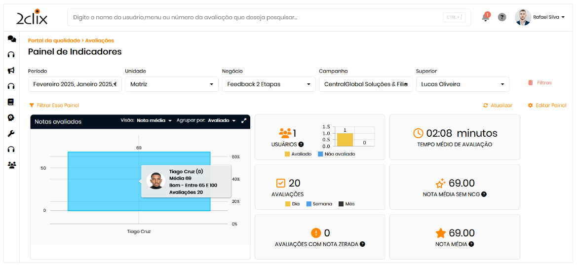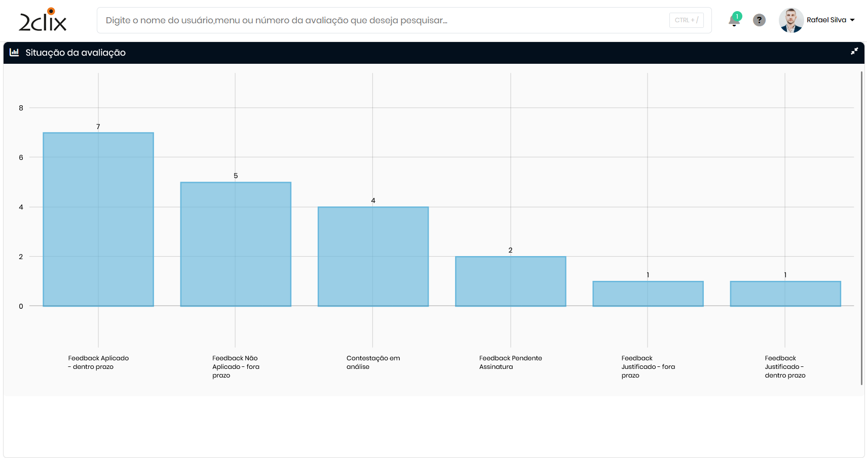 - Gráfico de Barras: O painel exibirá os resultados das avaliações em formato de gráfico de barras, permitindo uma visualização clara do desempenho dos avaliadores.