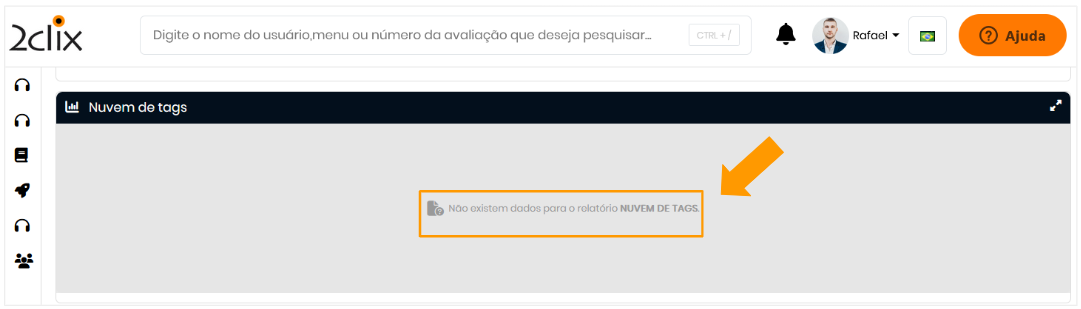 Painel Nuvem de Tags : quando não possui dados para exibir, a plataforma mostrará a seguinte mensagem dentro do painel :