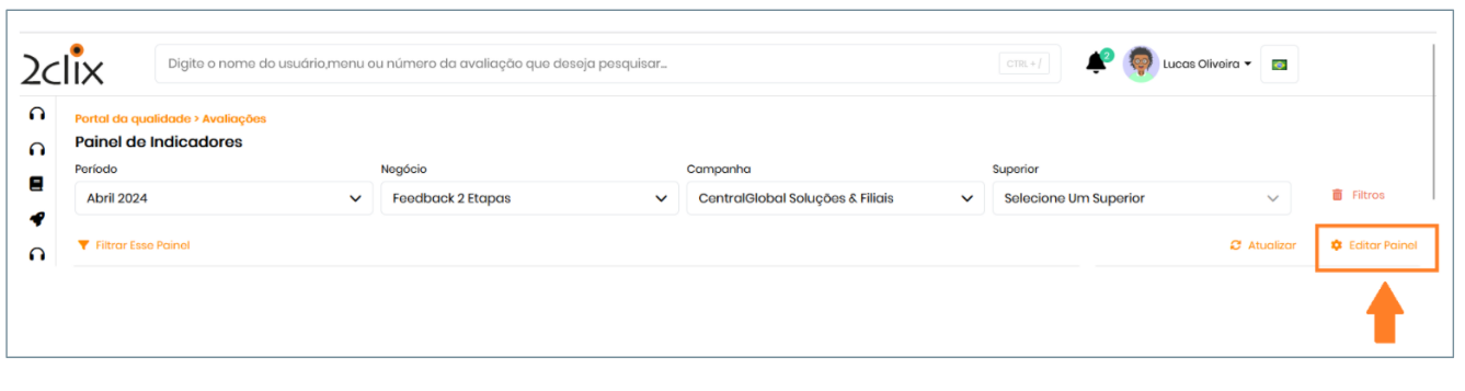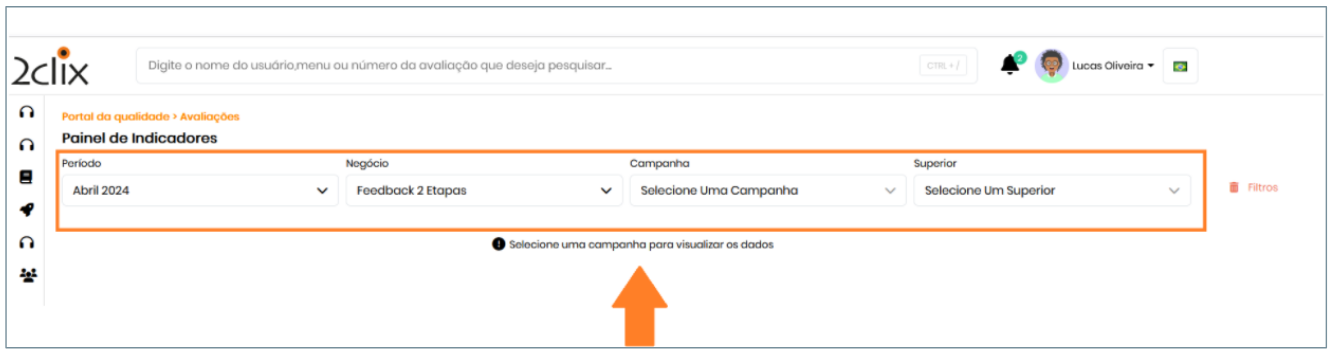 Ao acessar o painel inicial, selecione os filtros adequados para visualizar as informações conforme sua necessidade. Esses filtros permitem segmentar os dados por período, supervisor, status, entre outros.