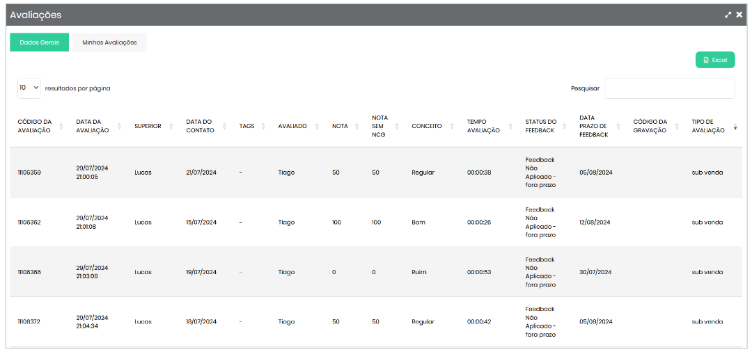 Com esse recurso, você pode visualizar e analisar facilmente as avaliações, utilizando filtros e gráficos para acompanhar os dados de maneira clara e objetiva.