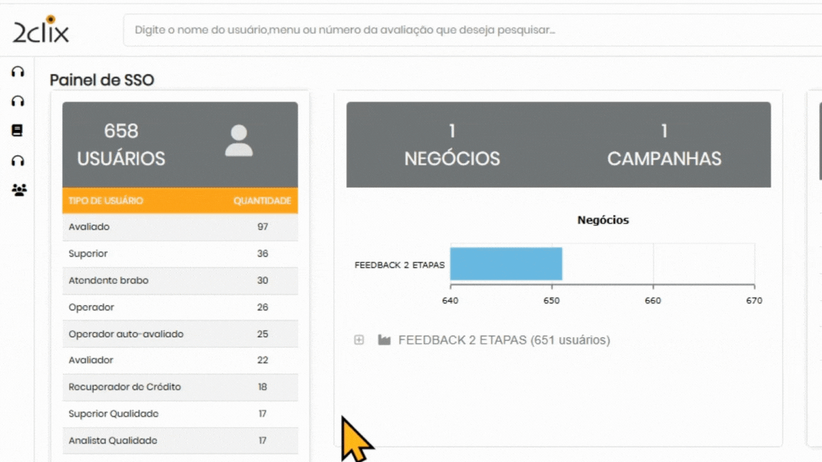 Para acessar: Menu lateral esquerdo: SSO>Painéis>Painel SSO.