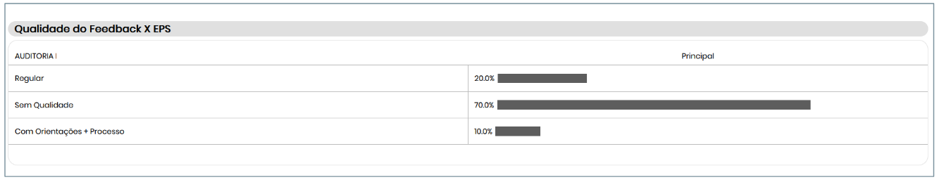 Este painel exibe os dados das auditorias definidas por percentual, facilitando a análise da qualidade geral dos feedbacks.