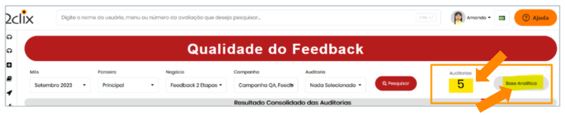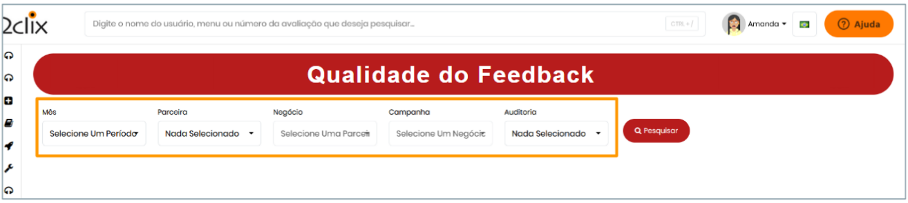 Antes de acessar os dados, é necessário ter a permissão "Qualidade do Feedback" ativa. Caso não visualize essa opção, entre em contato com o administrador da plataforma.