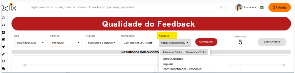Após aplicar os filtros, clique em "Pesquisar" . O sistema exibirá o total de feedbacks que passaram pelo processo de auditoria.