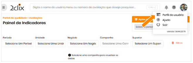 No cabeçalho da tela inicial, acione o Perfil do usuário (ícone no canto superior direito).