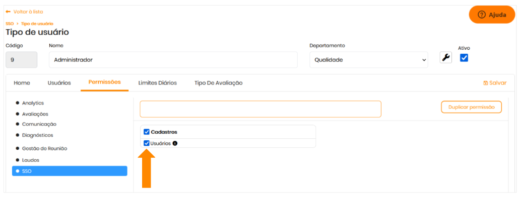 Para acessar essa funcionalidade, é necessária a permissão de Usuários .