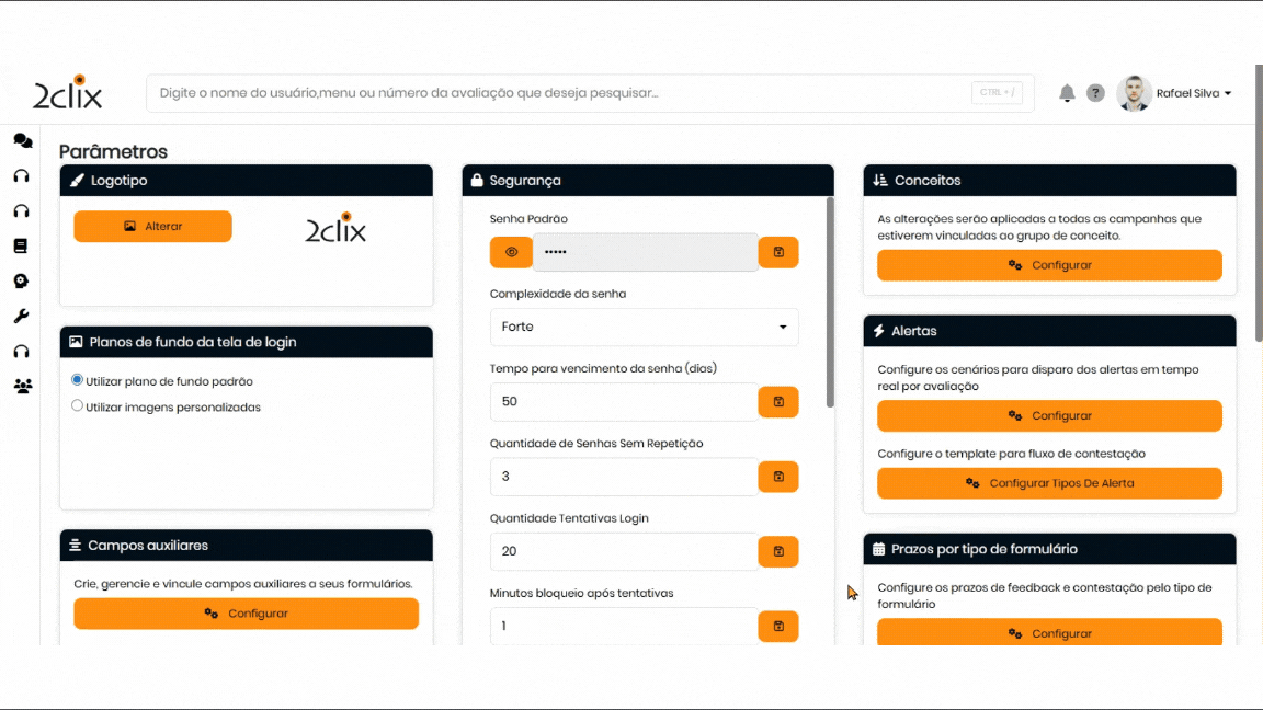 Personalize facilmente o plano de fundo da tela de login da plataforma com imagens temáticas. Administradores ou usuários com permissão podem criar visualizações exclusivas e envolver a equipe com mensagens motivacionais ou dicas rápidas.