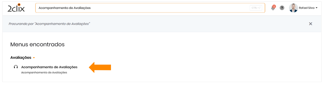 - Digite "Acompanhamento de Avaliações" e clique no menu exibido para acessar diretamente a página do relatório.