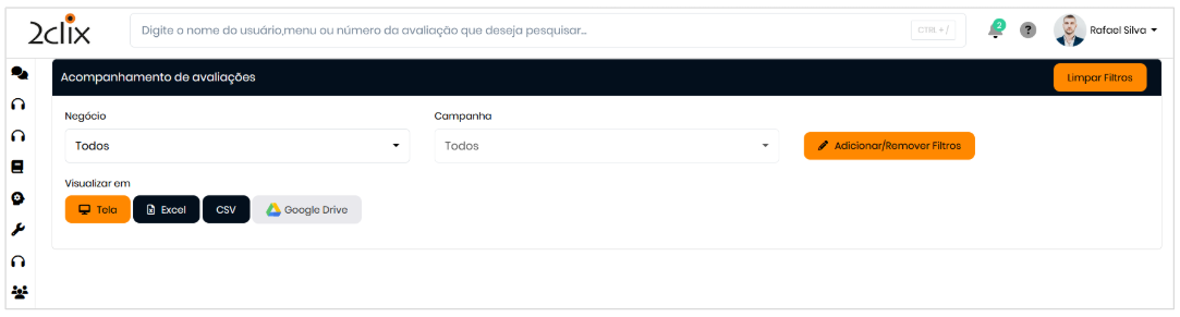 👁 Os resultados podem ser visualizados na tela ou exportados em formatos como Excel , CSV ou diretamente para o Google Drive .