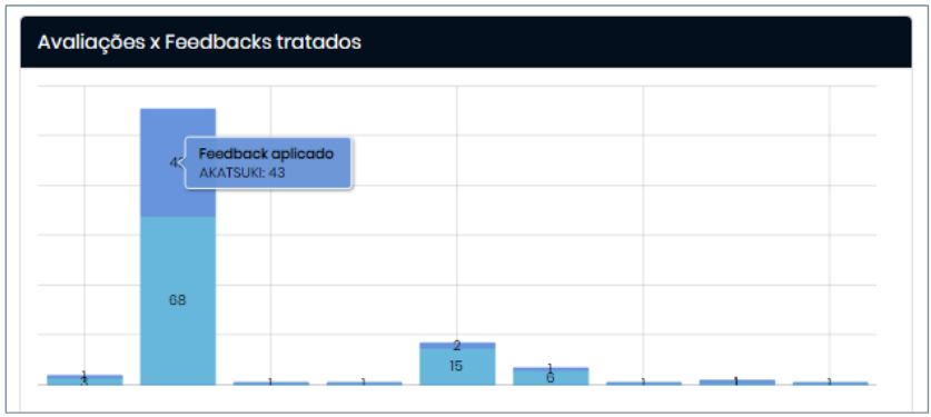Aqui, é possível acompanhar a eficácia do processo de tratamento de feedbacks. O gráfico e a tabela mostram: